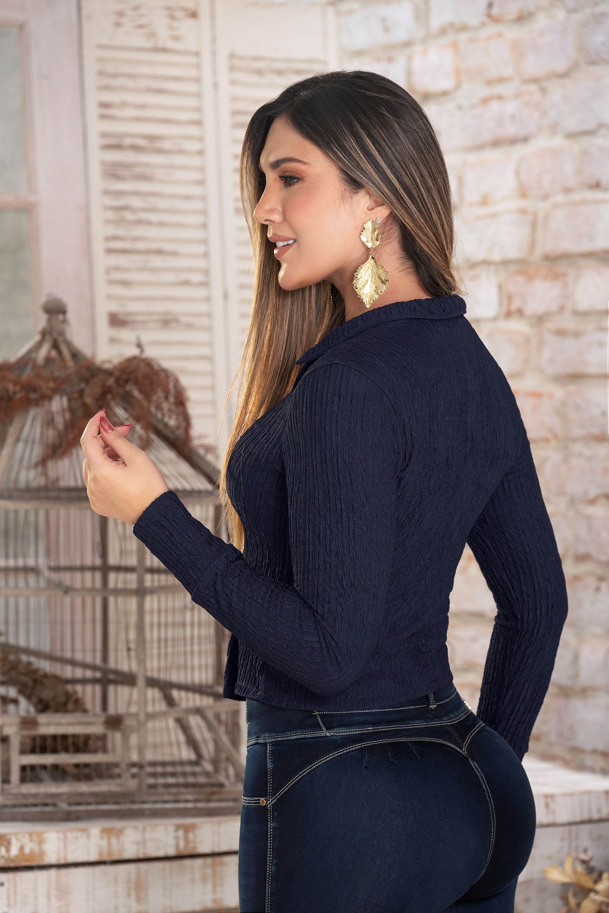 Blusa Azul Noche A-710 Tallas: S,M,L,XL Tela: Tejido Creppe, Color Azul Medianoche.