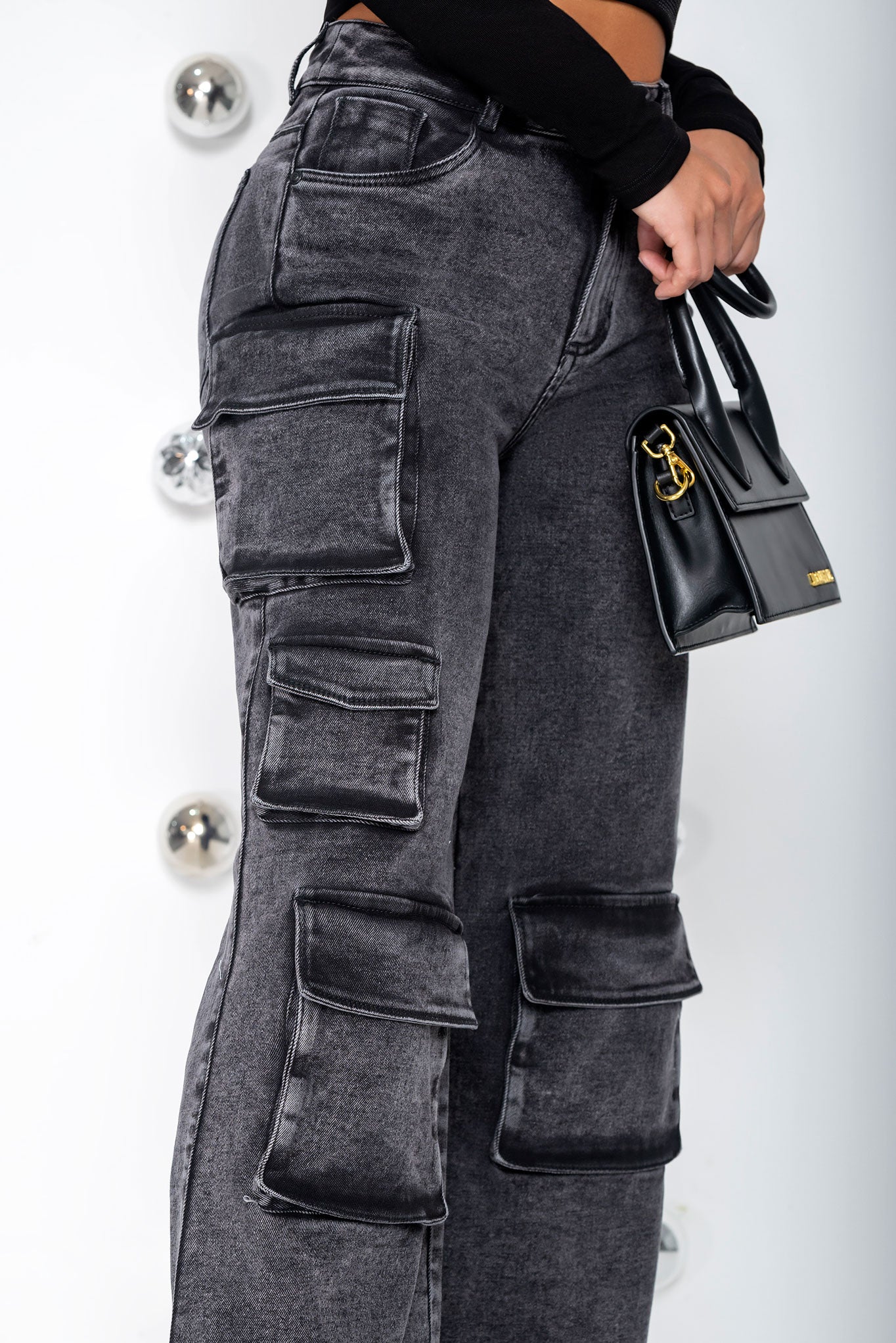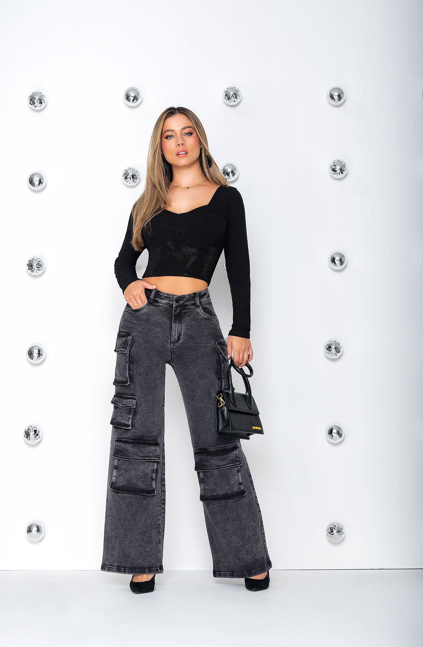 Cargo Jean - Bota Palazzo Bolsillos Camuflados - Negro Frost Ref 1589