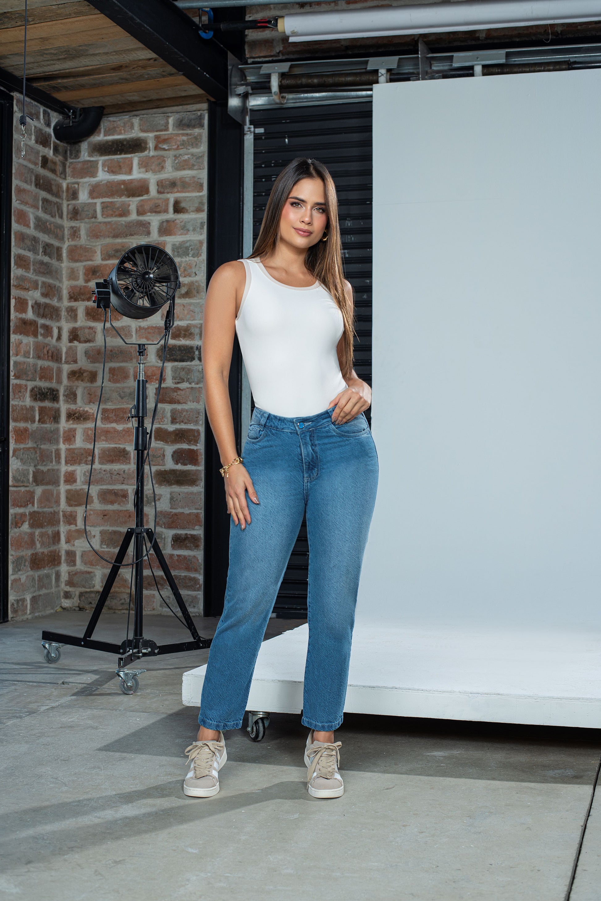 Jean Mom Fit Azul, tela con efecto diagonal- Indigo Rigido Nueva Silueta Confort Ref 1850