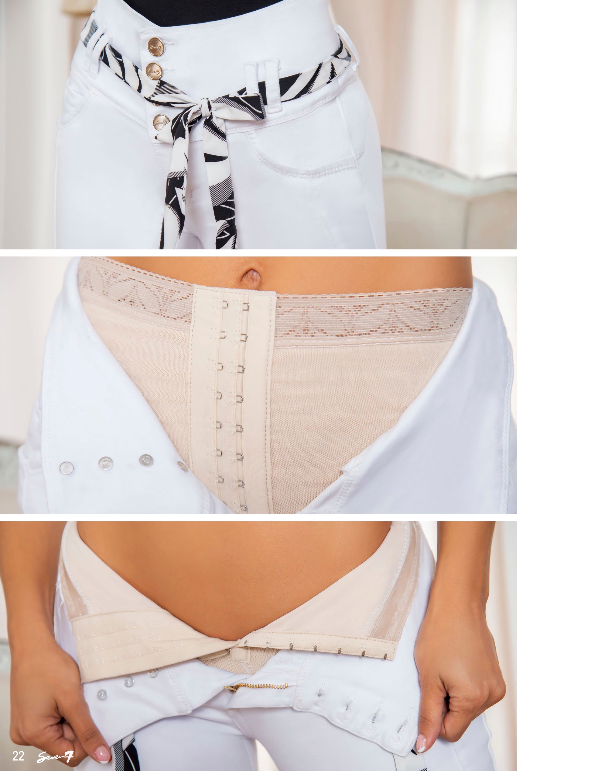Jeans 700-1342 Tallas: 6.8.10.12.14 Tela: Apt Piel De Durazno Tiro: Alto Control Abdomen. Tono: Blanco Bota: Campana Incluye Pañoleta