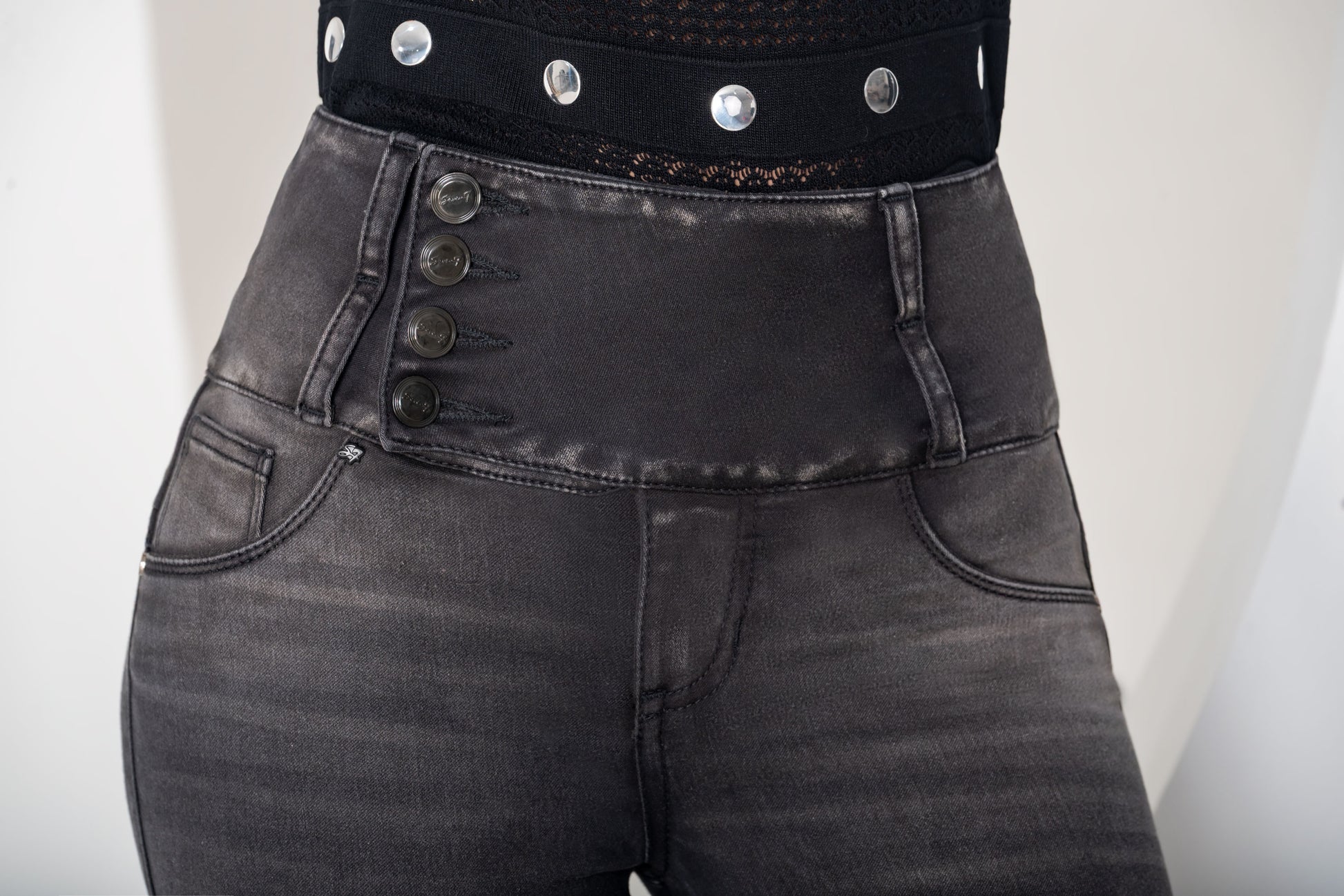 Jean Pretina Alta Control Abdomen - Bota Campana - Gris Oscuro Ref 1759