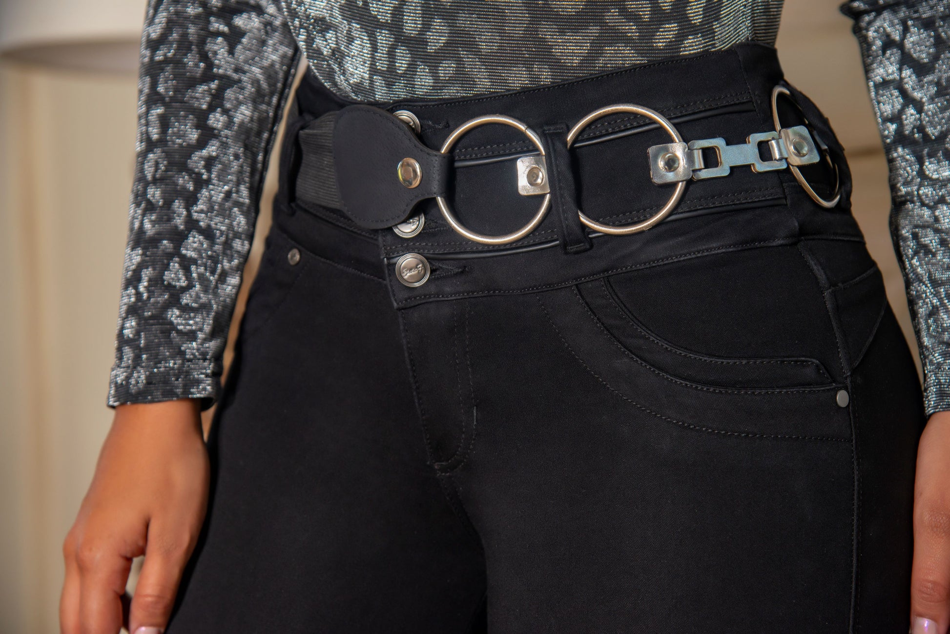 Jean Pretina Alta Control Abdomen - Bota Tubo Tobillero - Negro Ref 1453