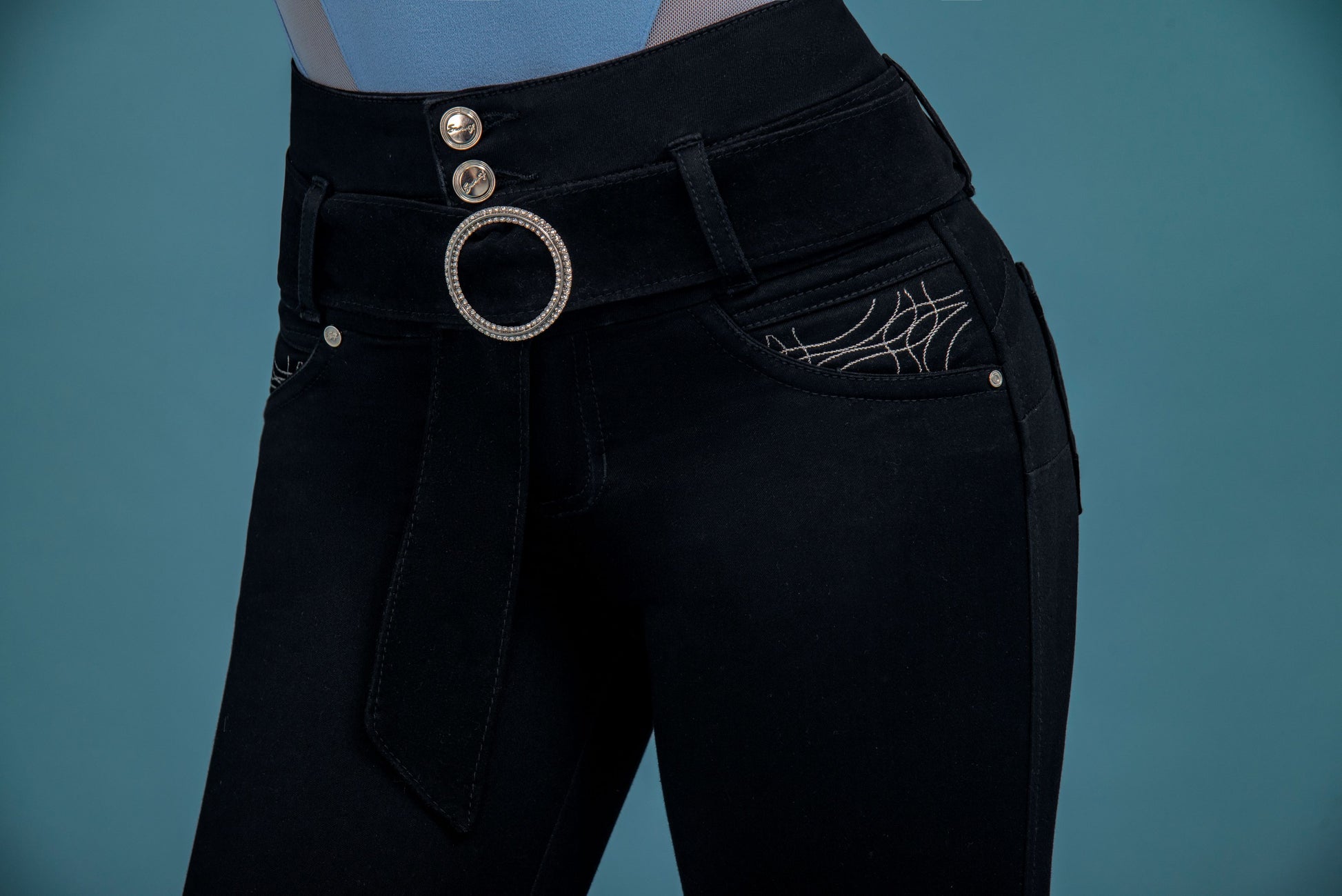 Jean Pretina Alta Control Abdomen - Bota Tubo Tobillero - Negro Ref 1506