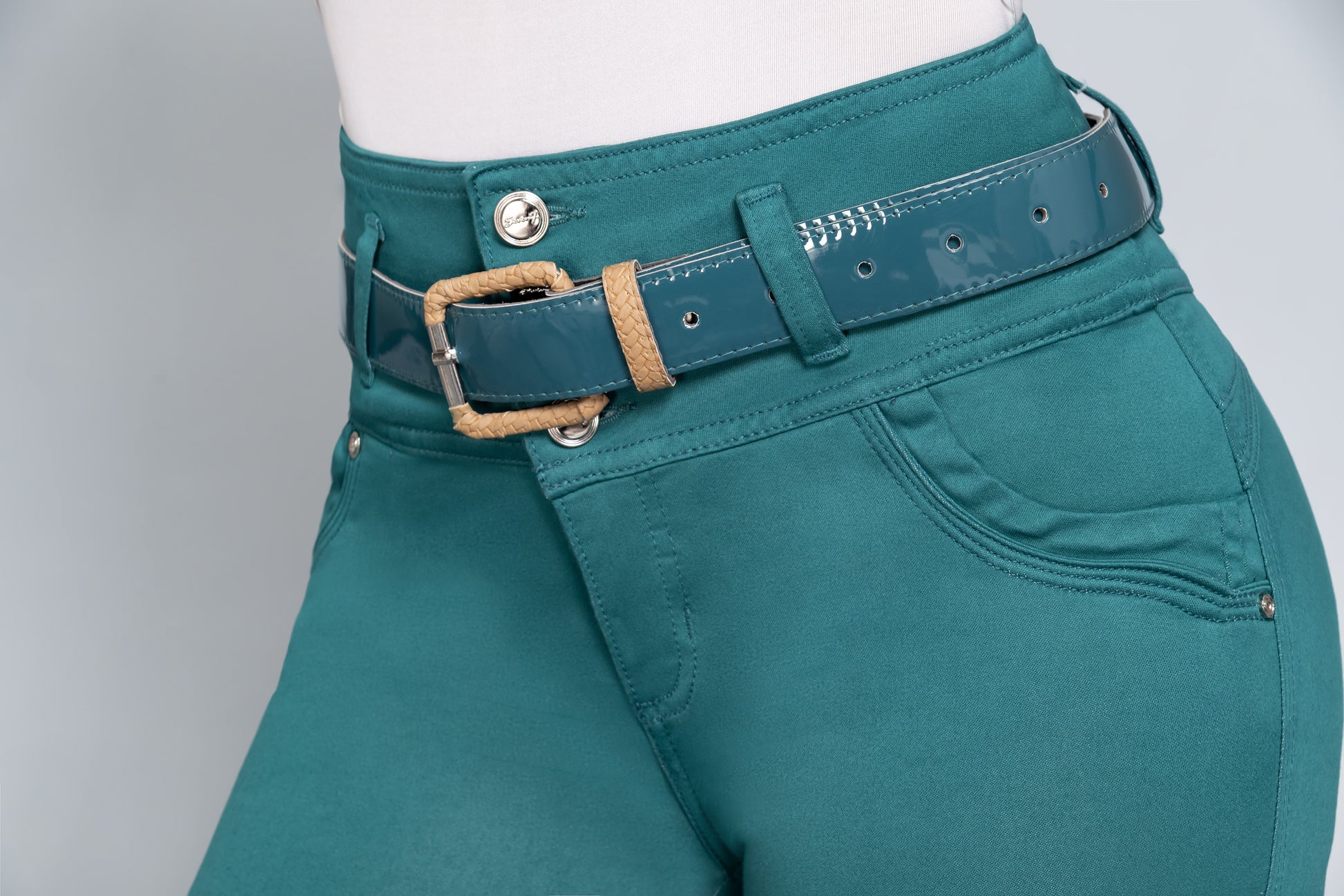 Jean Pretina Alta Control Abdomen - Bota Tubo Tobillero - Turquesa Ref 1537