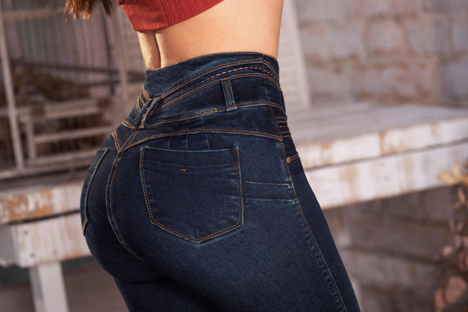 Jean 2084 Tallas: 6,8,10,12,14 Tela: Índigo Licrado, Bota Tubo, Pretina Alta, 3 Botones, Control Abdomen, Push Up, Detalle en relojero, Detalle bordado en pretina.