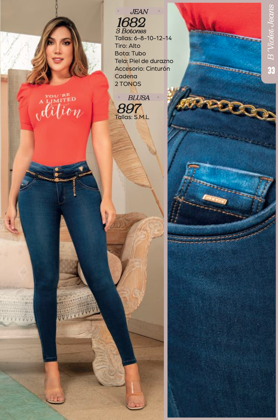 Jeans Bviolet Azul Medio Cinturón Ref 1682