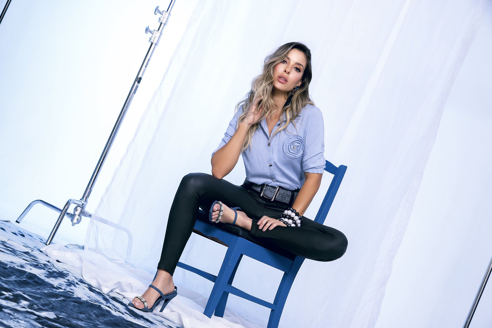 Pantalón Efecto Cuero Pretina Alta - Bota Tubo - Negro Ref 1535