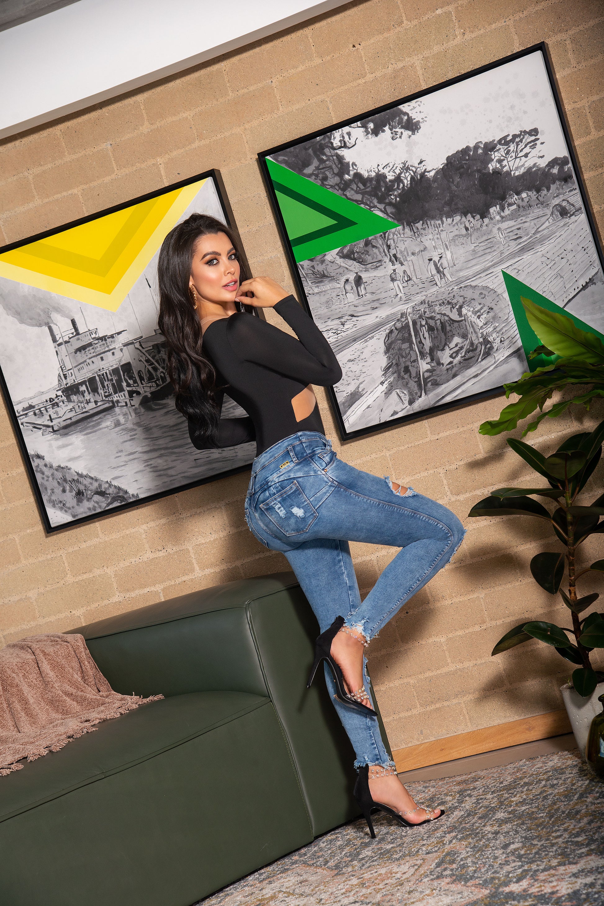 Jean Pretina Alta Control Abdomen - Bota Tubo Tobillero Ref 1422