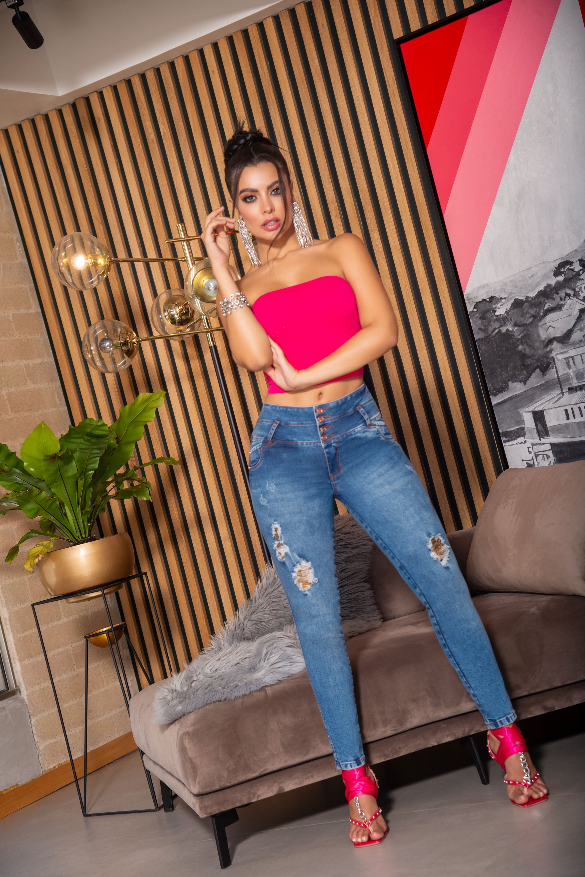 Jean Pretina Alta Control Abdomen - Bota Tubo Tobillero Ref 1426